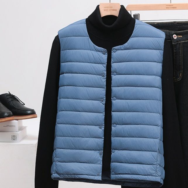 また、襟がないことで室内外の移動が多い日でも快適に着られ、電車や車移動の際にもかさばらないのが大きなメリットです。軽量でコンパクトなモデルが多く、秋〜冬の始まりや春先の肌寒い時期にも使えるため、一着持っておくと長いシーズン活躍します。真冬にはコートやジャケットのインナーダウンとして使えば、防寒性を高めながらスタイルを崩さない万能レイヤーとしても機能します。
