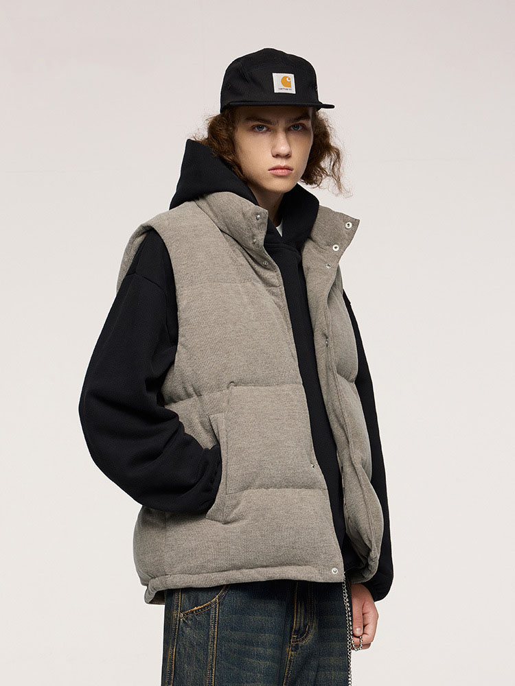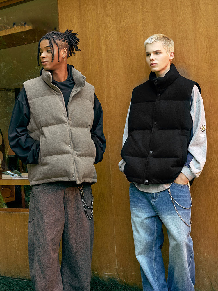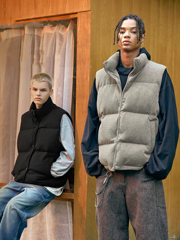 メンズダウンの定番アイテム、機能性とおしゃれを両立したダウンベストです。