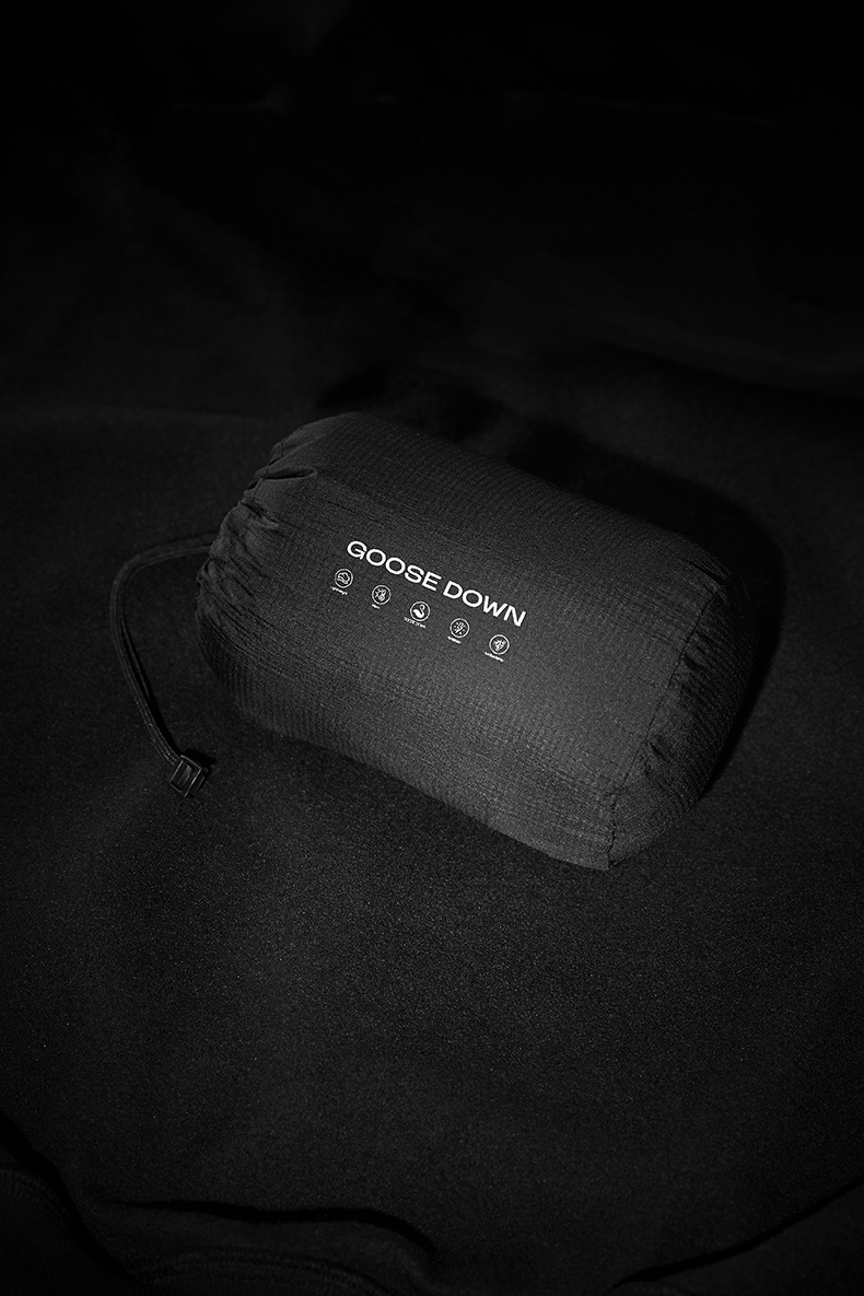 九十パーセント白鵞鳥羽毛を使用し、軽量で薄手ながら優れた保温性を実現。
